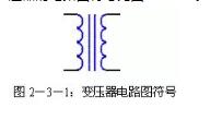 通常直流穩(wěn)壓電源使用電源變壓器來(lái)改變輸入到后級(jí)電路的電壓。電源變壓器由初級(jí)繞組、次級(jí)繞組和鐵芯組成。初級(jí)繞組用來(lái)輸入電源交流電壓,次級(jí)繞組輸出所需要的交流電壓。通俗的說(shuō),電源變壓器是一種電→磁→電轉(zhuǎn)換器件。即初級(jí)的交流電轉(zhuǎn)化成鐵芯的閉合交變磁場(chǎng),磁場(chǎng)的磁力線切割次級(jí)線圈產(chǎn)生交變電動(dòng)勢(shì)。次級(jí)接上負(fù)載時(shí),電路閉合,次級(jí)電路有交變電流通過(guò)。變壓器的電路圖符號(hào)見(jiàn)圖2-3-1。